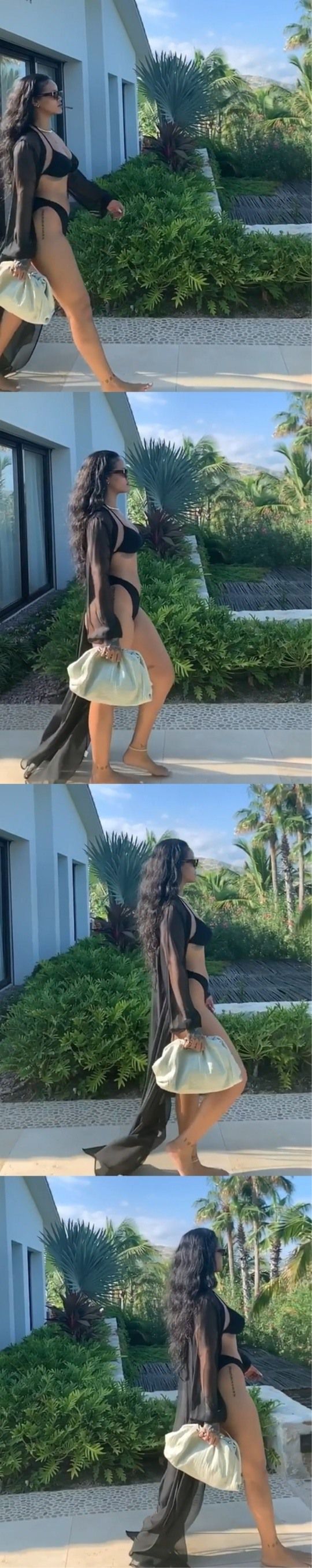 리한나 인스타 영상 캡처 가수 겸 배우 리한나가 수영복 자태로 섹시미를 드러냈다. 17일(한국시간) 가수 리한나는 자신의 인스타그램을 통해 한 개의 영상을 게재했다. 공개된 영상 속 리한나는 비키니 차림으로 고양이처럼 사뿐한 걸음으로 굴곡 있는 몸매를 자랑하고 있다. 영상에서 리한나는 입에 뭔가를 문 채 선글라스를 쓴 도도한 모습으로 압도, 팬들의 시선을