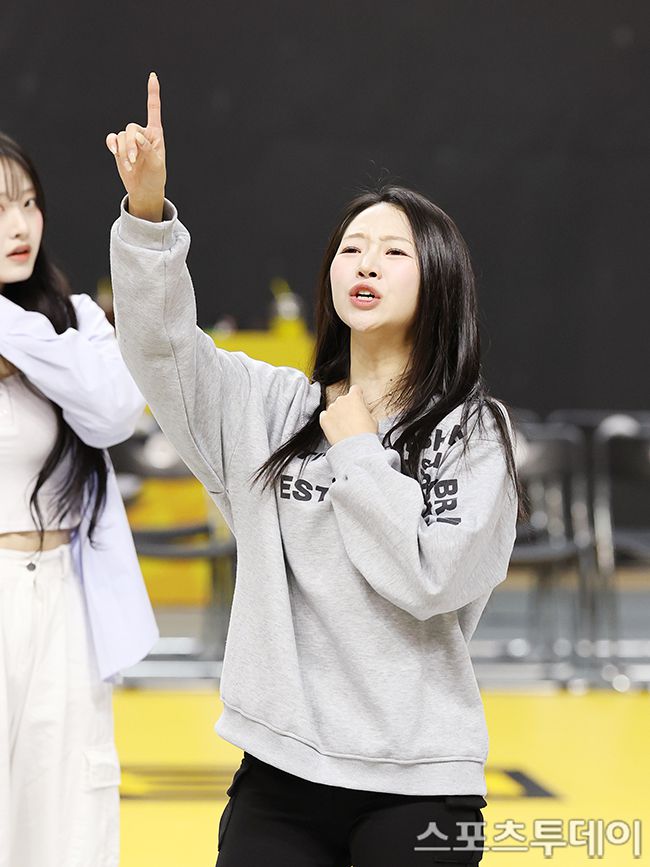 2025-2026 진에어 V-리그 남자부 KB손해보험-삼성화재 경기가 24일 경기도 의정부시 경민대 체육관에서 열렸다. KB손해보험 치어리더 이연진이 경기전 댄스공연 리허설을 하고 있다. 2026.02.24. [스포츠투데이 권광일 기자 sports@stoo.com]