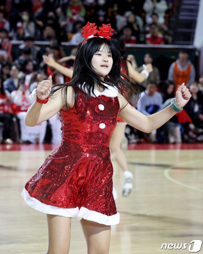 (서울=뉴스1) 장수영 기자 = 25일 오후 서울 송파구 잠실학생체육관서 열린 '2023-2024 정관장 프로농구' 서울SK와 서울 삼성의 경기에서 추신수 딸 추소희 양이 응원전을 펼치고 있다. 2023.12.25/뉴스1 presy@news1.kr Copyright ⓒ 뉴스1. All rights reserved. 무단 전재 및 재배포, AI학습 이용 금지