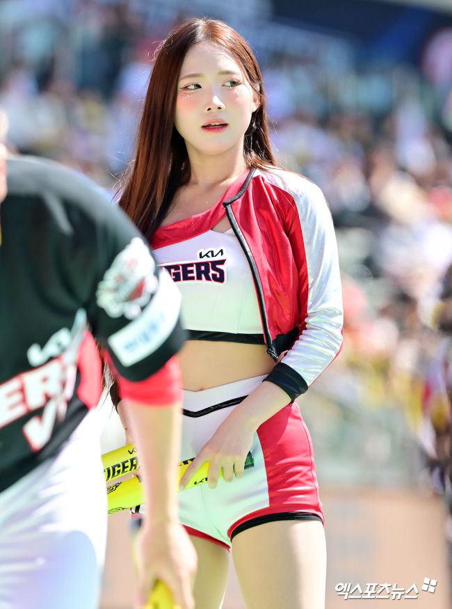 20일 오후 서울 송파구 잠실야구장에서 열린 '2025 신한 SOL Bank KBO리그' KIA 타이거즈와 두산 베어스의 경기, 이소민 치어리더가 열띤 응원을 선보이고 있다. 김한준 기자 kowel@xportsnews.com