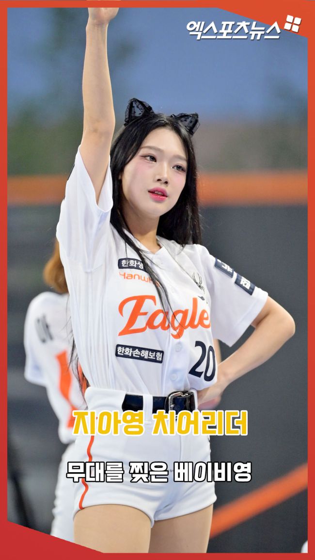 13일 오후 대전 한화생명 볼파크에서 열린 '2025 신한 SOL Bank KBO리그' 두산 베어스와 한화 이글스의 경기, 한화 지아영 치어리더가 멋진 공연을 선보이고 있다. 김한준 기자 kowel@xportsnews.com