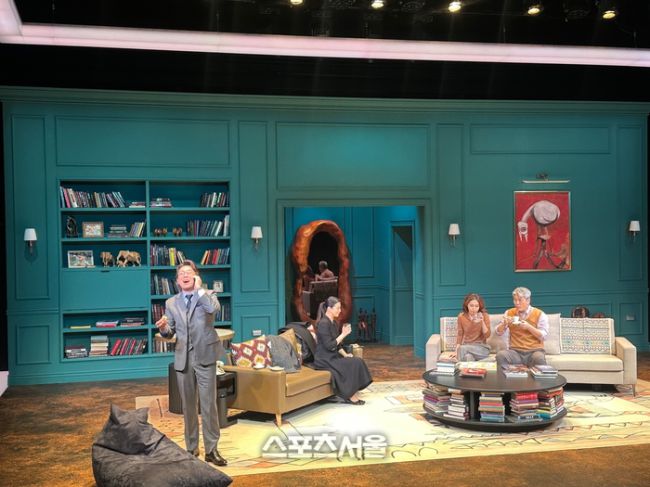 생각을 감추지 못하는 ‘어른’…기괴한 그림·거울 속 숨은 의미 연극 ‘대학살의 신’은 자신이 가장 이성주의자라고 착각하는 인물들을 통해 폭력적인 인간 내면을 그린다. 사진 | 표권향 기자 gioia@sportsseoul.com 한 중산층 가정 거실에서 벌어지는 어른들의 싸움을 다룬 연극 ‘대학살의 신’에는 감춰진 비밀이 있다. 바로 4명의 인물이 감추고 있