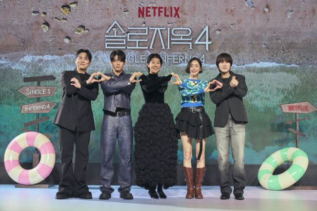 '솔로지옥4' MC 한해, 덱스, 홍진경, 이다희, 규현(왼쪽부터). 사진=넷플릭스 일반인 연애 리얼리티의 대표 프로그램인 ‘솔로지옥’은 넷플릭스 한국 예능 대표 IP(지식재산권)로 자리 잡았다. 다른 연애 관찰 프로그램인 ‘하트시그널’, ‘환승연애’과 비교해 가장 많은 시즌을 내놓고 있지만 매 시즌 압도적인 화제성을 자랑한다. ‘연예인 등용문’으로 변질됐