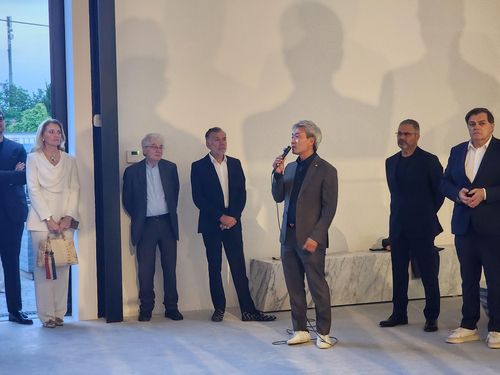 개관식 인사말하는 박은선 조각가 (피에트라산타[이탈리아]=연합뉴스) 신창용 특파원 = 31일(현지시간) '조각의 성지'로 불리는 이탈리아 토스카나주 피에트라산타에 한국인 조각가 박은선의 이름을 건 미술관 '아틀리에-뮤지엄 박은선'이 개관했다. 박 작가가 개관식 인사말을 하고 있다. 2025.05.31 changyong@yna.co.kr (피에트라산타[이탈리