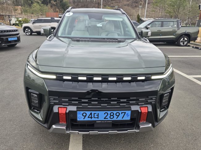 무쏘 EV 전면부. 이정인 기자 ‘스포츠유틸리티차(SUV)와 픽업트럭의 중간 어디쯤?’ KG모빌리티의 새로운 픽업트럭 무쏘 EV를 타보고 든 생각이다. 무쏘 EV는 패밀리카로도 손색없는 면면을 갖춰 ‘투박한 차’라는 픽업트럭에 대한 고정관념을 깼다. 기자는 얼마 전 서울 강남구에서 양평 양수리까지 약 65㎞ 구간을 왕복하며 무쏘 EV의 매력을 직접 느껴봤다