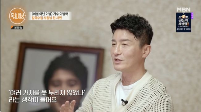'특종세상’ 가수 이범학이 과거 계약도 없이 소속사에서 일했음을 밝혔다. 30일 전파를 탄 MBN '특종세상'에서 가수 이범학의 근황이 공개됐다. 이범학은 “억지로 강아지 끌려가듯이 스케줄하러 끌려간 적도 있었다. ‘내갈 이걸 왜 하고 있지?’(라는 생각도 들었다)”라고 인터뷰를 통해 밝혔다. 이범학 부부의 가게는 최근에 자리를 잡았다. 이범학은 “제가 그