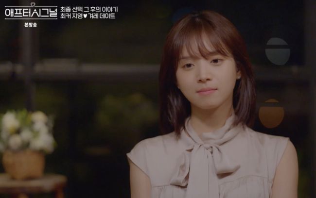 ’애프터시그널’에서 김지영이 루머에 대해 직접 언급했다. 1일 방송된 채널A 예능 ‘애프터 시그널(하트시그널 비하인드 편성분)'이 전파를 탔다. 겨레와 지영 영상이 그려졌다. 지영은 겨레 선택에 대해 “마지막쯤 마음이 커져, 고민없이 선택했다”고 말했다. 두 사람은 손깍지하며 서로를 반겼다. 지영은 겨레의 머리카락을 만져주는 스킨십을 보이기도. 겨레는 “이