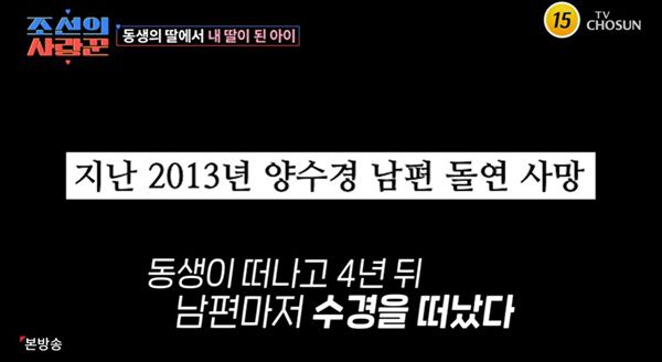 '조선의 사랑꾼' 양수경, 동생 사망 4년 뒤 남편도 별세 "혼자 애 셋 키워" [텔리뷰]