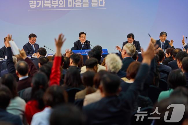 (서울=뉴스1) 허경 기자 = 이재명 대통령이 14일 경기 파주시 라이브러리스테이 지지향에서 열린 '경기 북부의 마음을 듣다' 타운홀 미팅에서 참석자들의 질문을 받고 있다. (대통령실 제공. 재판매 및 DB 금지) 2025.11.14/뉴스1 neohk@news1.kr Copyright ⓒ 뉴스1. All rights reserved. 무단 전재 및 재배포,
