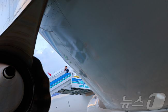 (서울=뉴스1) 이재명 기자 = 튀르키예 국빈 방문 일정을 마친 이재명 대통령과 김혜경 여사가 25일(현지시간) 앙카라 에센보아 국제공항에서 공군 1호기에 올라 인사하고 있다. (이재명 대통령 SNS. 재판매 및 DB 금지) 2025.11.27/뉴스1 2expulsion@news1.kr Copyright ⓒ 뉴스1. All rights reserved. 무