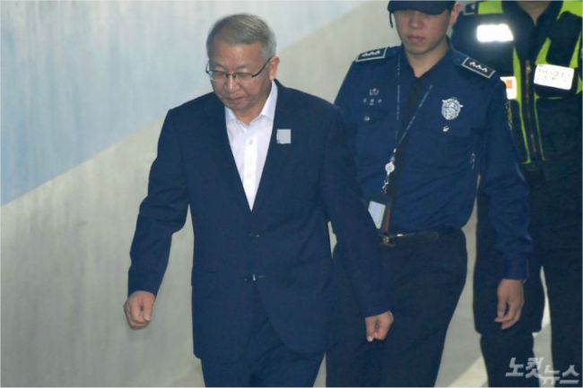 CBS노컷뉴스 박종민 기자 사법행정권 남용 혐의로 구속기소 된 양승태 전 대법원장이 29일 오전 첫 공판이 열리는 서울중앙지법 법정으로 향하고 있다. 저작권자 © CBS 노컷뉴스 무단전재 및 재배포 금지