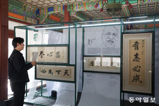 7일 오후 서울 덕수궁 덕홍전에서 특별전 ‘유묵, 별이 되어 빛나다. 두 번째 빛’이 열리고 있다. 스타벅스코리아는 광복 80주년을 맞아 지난 2015년부터 문화유산국민신탁에 기증한 독립유공자의 친필 휘호 11점을 8일부터 20일까지 덕수궁 덕홍전에서 공개하는 특별전을 개최한다. 이번 특별전은 ‘유묵, 별이 되어 빛나다. 두 번째 빛’을 주제로 진행하며,