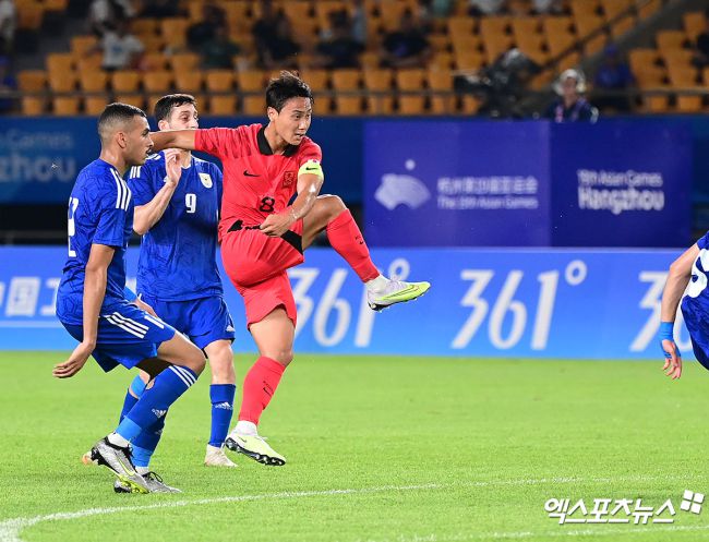 황선홍호 캡틴 백승호가 키르기스스탄전 실수로 대회 첫 실점을 헌납한 장면에 대해 "오히려 다시 긴장할 수 있는 계기가 돼 다행"이라고 밝혔다. 황선홍 감독이 이끄는 아시안게임 대표팀은 27일(한국시간) 중국 진화에 위치한 진화스포츠센터경기장에서 열린 키르기스스탄과의 2022 항저우 아시안게임 남자축구 16강전서 5-1 대승을 거뒀다. 8강에 올라간 대표팀은
