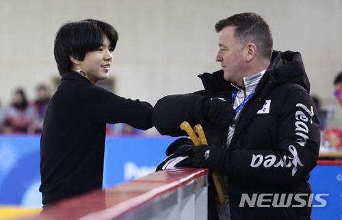 기사내용 요약 한국 지도자 등록…3일 차준환과 베이징 입성 베이징올림픽서 남자 싱글 '금메달 후보' 하뉴도 지도 【강릉=뉴시스】최동준 기자 = 피겨스케이팅 남자 싱글 종목에 출전하는 차준환이 6일 강원 강릉아이스아레나에서 훈련을 마치고 브라이언 오서 코치와 팔꿈치를 맞대고 있다. 2018.02.06. photocdj@newsis.com [베이징=뉴시스]안경
