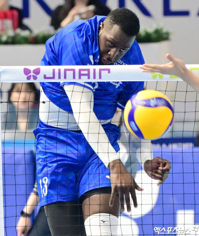 19일 오후 인천 계양체육관에서 열린 '진에어 2025-2026 V-리그' 대한항공과 한국전력의 경기, 한국전력 베논이 공격을 시도하고 있다. 김한준 기자 kowel@xportsnews.com
