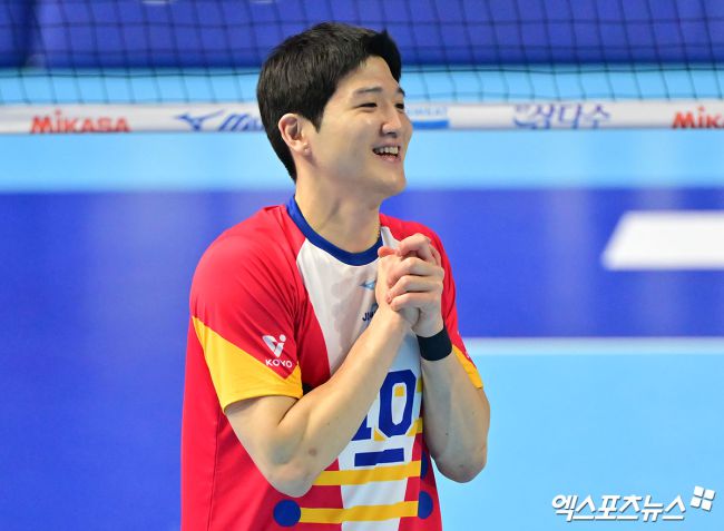 19일 오후 인천 계양체육관에서 열린 '진에어 2025-2026 V-리그' 대한항공과 한국전력의 경기, 대한항공 정지석이 공격을 시도하고 있다. 김한준 기자 kowel@xportsnews.com