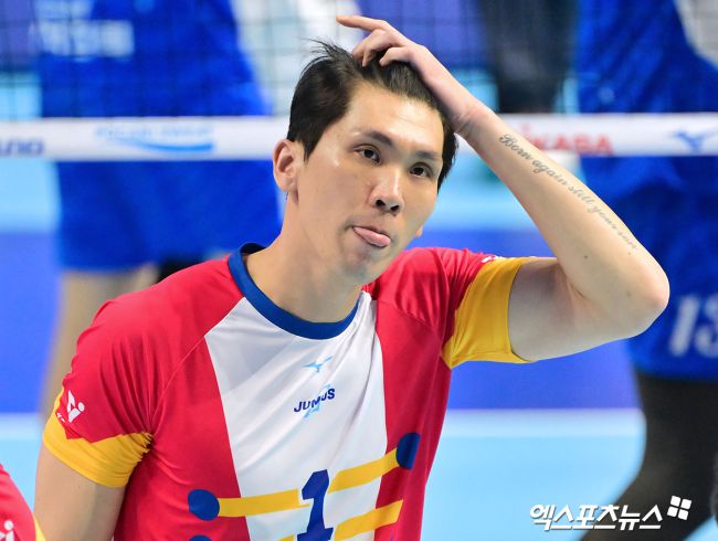 19일 오후 인천 계양체육관에서 열린 '진에어 2025-2026 V-리그' 대한항공과 한국전력의 경기, 대한항공 김규민이 득점 후 기뻐하고 있다. 김한준 기자 kowel@xportsnews.com