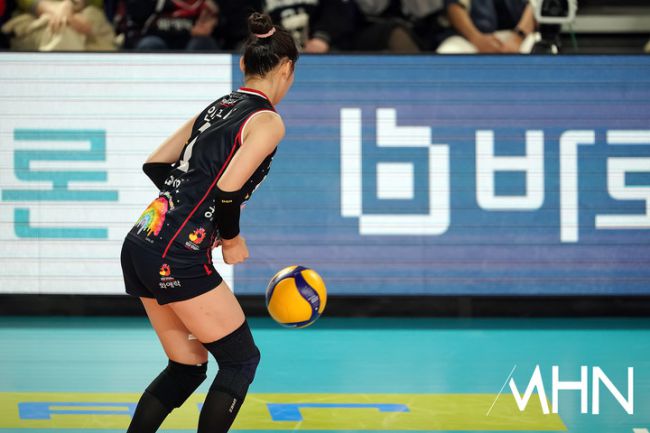 19일 대전충무실내체육관에서 '2025-2026 V-리그 여자부' 정관장 대 GS칼텍스 경기가 열렸다. 이날 정관장의 새로운 아시아 쿼터 선수 몽골 출신 아웃사이드 히터 자미얀푸렙 엥흐서열(등록명 인쿠시)가 새로운 무대 데뷔전을 펼쳤다. 인쿠시가 경기를 펼치고 있다.