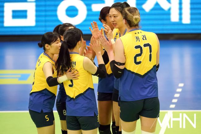 24일 경기도 수원실내체육관에서 '진에어 2025~2026 V-리그' 여자부 6라운드 현대건설(2위 56점 19승 11패)과 한국도로공사(1위 59점 21승 9패) 경기가 열렸다. 3연패에 빠진 한국도로공사가 부진한 틈을 타 현대건설은 4연승을 질주하며 맹추격하고 있다. 현대건설이 1세트를 먼저 가져가고 있다.