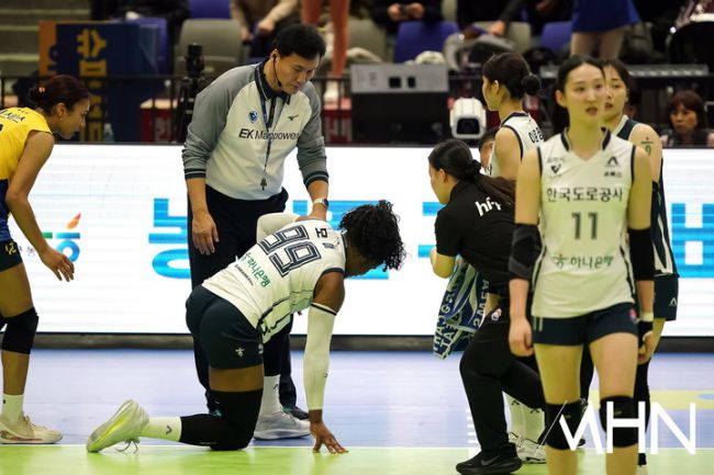 [mhn포토] 한국도로공사에게 부상의 악재