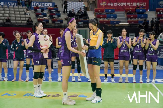 [mhn포토] 은퇴식 전 흥국생명에게 선물 받는 양효진
