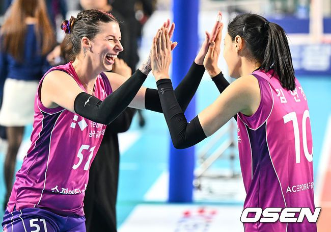 흥국생명 윌로우가 데뷔전에서 세트 스코어 3-0으로 승리한 후 김연경과 기쁨을 나누고 있다. 2024.01.30 / foto0307@osen.co.kr 흥국생명 윌로우가 데뷔전에서 세트 스코어 3-0으로 승리한 후 김연경과 기쁨을 나누고 있다. 2024.01.30 / foto0307@osen.co.kr V-리그 데뷔전을 성공적으로 마친 윌로우 존슨(흥국생명