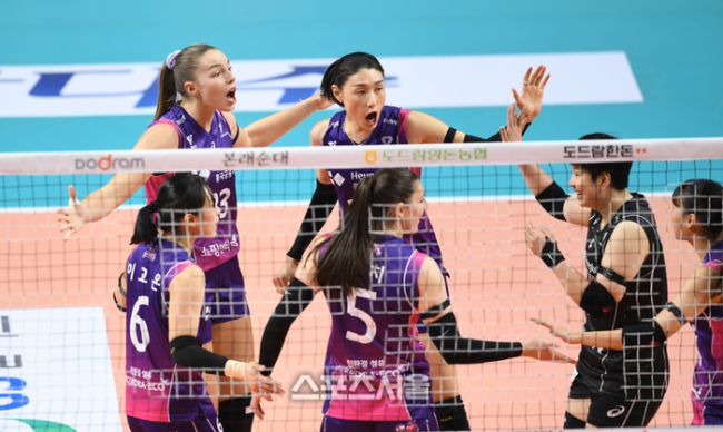 흥국생명 선수들이 7일 장충체육관에서 열린 2024~2025 V-리그 GS칼텍스와 경기에서 득점 후 환호하고 있다. 2025. 1. 7.장충 | 최승섭기자 thunder@sportsseoul.com 흥국생명이 IBK기업은행을 잡고 한숨 돌렸다. 흥국생명은 21일 인천 삼산월드체육관에서 열린 기업은행과의 도드람 2024~2025 V리그 여자부 4라운드 맞대결