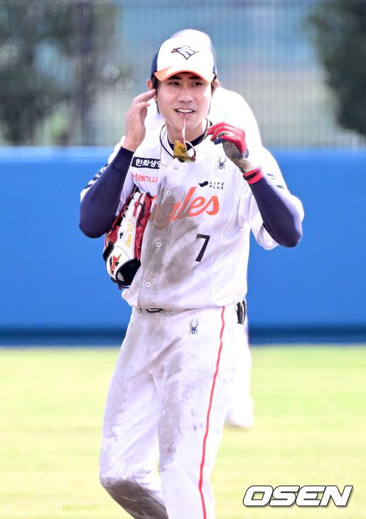 "1번타자 욕심 생겼다" 심우준, 작년과는 다르다…스스로도 놀란 자신감, 리드오프 자리 잡을까 [오!쎈 오키나와]