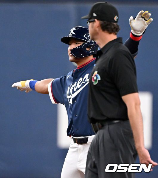 3일 일본 오사카 교세라돔에서 월드베이스볼클래식(WBC) 공식 연습 경기 한국 야구 대표팀과 오릭스 버팔로스의 경기가 열렸다.우리 대표팀은 연습 경기 2차전을 치른 뒤 5일 일본 도쿄돔에서 체코와 WBC 조별리그 1차전에서 격돌한다.2회초 2사 1,2루에서 한국 안현민이 적시타를 치고 환호하고 있다. 2026.03.03 /spjj@osen.co.kr 2일