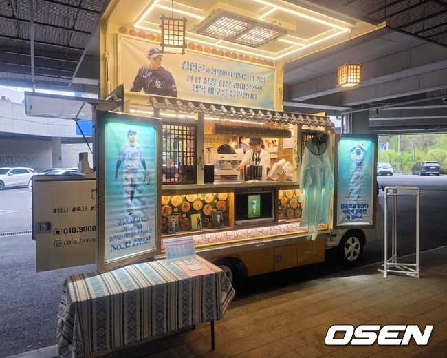 ‘그라운드에 서 있는 모든 날들이 눈부신 행복만 가득하길’ 라팍에 도착한 갓헌곤 응원 커피 트럭 [오!쎈 대구]