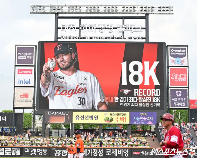 폰세, 류현진 넘고 KBO 새 역사 썼다! KKKKKKKKKKKKKKKKKK 탈삼진쇼쇼쇼! SSG 타선 '추풍낙엽' [대전 라이브]