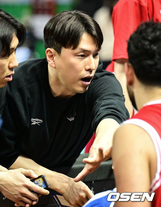 5일 서울 잠실실내체육관에서 2025-26 LG전자 프로농구 서울 삼성과 창원 LG의 경기가 진행됐다.서울 삼성은 12승 24패로 리그 9위, 창원 LG는 26승 11패로 1위를 기록 중이다.3쿼터 삼성 김효범이 작전을 지시하고 있다. 2026.02.05 /cej@osen.co.kr 프로농구경기에서 지각을 범한 김효범(43) 서울 삼성 감독이 결국 징계를