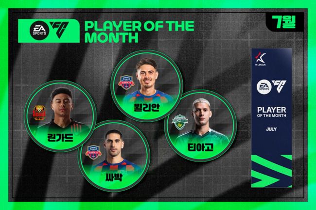 2025시즌 7월 'EA SPORTS 이달의선수상(EA SPORTS Player Of The Month)'의 주인공을 선정하는 팬 투표가 14일(목)부터 17일(일)까지 4일간 실시된다. 'EA SPORTS 이달의선수상'은 한국프로축구연맹(총재 권오갑, 이하 '연맹')과 K리그 공식 비디오게임 파트너 일렉트로닉아츠(Electronic Arts, 이하 'EA