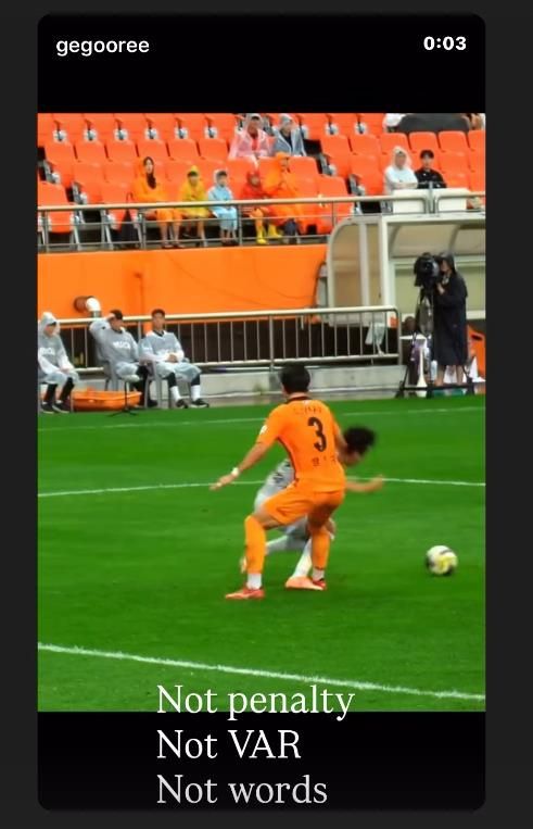 거스 포옛 감독 인스타그램 캡쳐 전북 현대 거스 포옛 감독이 사실상 ‘오심’에 가까운 심판 판정을 저격했다. 포옛 감독은 3일 제주월드컵경기장에서 열린 제주SK와의 K리그1 32라운드 경기를 마친 뒤 자신의 인스타그램에 심판 판정에 불만을 드러내는 게시물을 올렸다. 포옛 감독은 이날 경기 후반 39분 전진우가 제주 수비수 장민규 발에 걸려 넘어지는 영상을