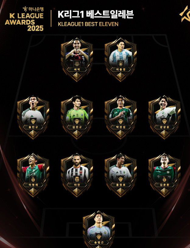 [공식발표] 2025 K리그1 빛낸 영광의 얼굴들...전북, B11 6명 배출→'득점왕' 싸박, '도움왕' 세징야