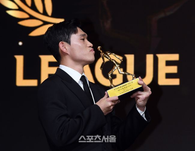울산 HD 이동경이 1일 서울 서대문구 스위스그랜드호텔에서 열린 ‘하나은행 K리그 2025 대상 시상식’에서 K리그1 MVP를 수상한 뒤 기념촬영을 하고 있다. 2025. 12. 1. 박진업 기자 upandup@sportsseoul.com K리그1 ‘별 중의 별’로 선택받은 이동경(울산HD)이 도약을 다짐했다. 이동경은 1일 서울 홍은동 스위스그랜드호텔에서