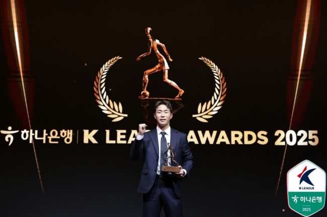 K리그1 영플레이어상을 수상한 이승원이 당찬 목표를 밝혔다. 한국프로축구연맹(이하 연맹)이 1일 오후 3시부터 서울 서대문구 홍은동에 위치한 스위스그랜드호텔에서 하나은행 K리그 2025 대상 시상식을 진행했다. 지난달 24일부터 K리그 개인상 후보를 선정했고, 감독(30%), 주장(30%), 미디어(40%) 투표를 통해 최종 수상자를 가렸다. K리그1 영플