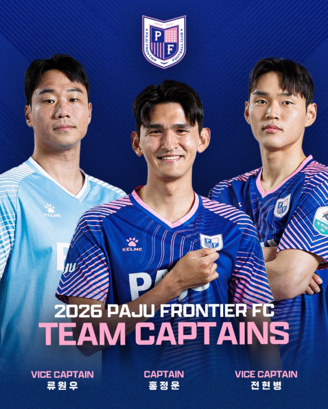 2026시즌 K리그2 무대에 첫발을 내딛는 파주 프런티어 FC가 주장단 구성을 완료하고 그라운드 위에서의 힘찬 항해를 준비하고 있다. K리그2 시즌 첫 번째 시즌을 치르는 파주의 주장으로는 K리그에서 177경기를 뛴‘베테랑 수비수’ 홍정운을 낙점했다. 이와 함께 팀의 정신적 지주인 골키퍼 류원우 선수와 중앙 수비수 전현병을 부주장으로 선임하며 탄탄한 리더십