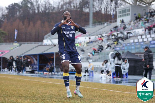 [인터풋볼=신동훈 기자(아산)] '아산 루카쿠' 은고이와 대구FC에 온 장신 스트라이커 데커스가 만난다. 충남아산과 대구FC는 15일 오후 2시 이순신종합운동장에서 열리는 '하나은행 K리그2 2026' 3라운드에서 대결한다. 충남아산은 신송훈, 김주성-막스-최희원-박종민, 박시후-손준호-김영남-김정현, 김혜성-은고이가 선발로 나섰다. 김진영, 이호인, 박성