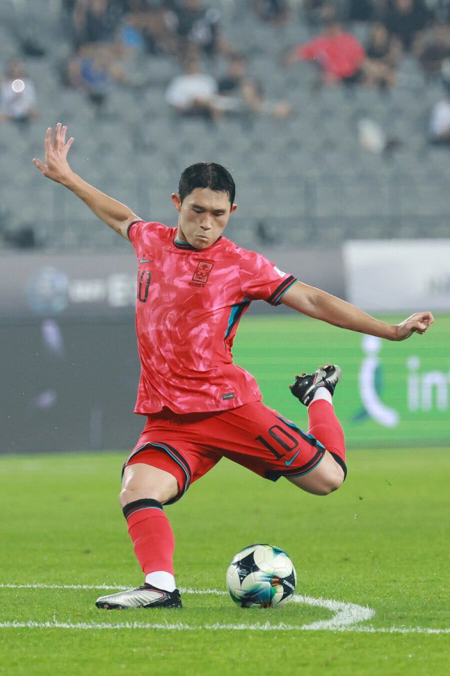 '병장' 이동경(27, 김천)이 측면에서 중앙으로 진입한 뒤 파포스트를 겨냥한 환상적인 감아차기 슈팅으로 올해 동아시안컵 1호 득점 주인공에 이름을 올렸다. 한국 축구대표팀과 토트넘 홋스퍼의 주장 손흥민을 연상케 하는 '원더골'을 꽂았지만 정작 스스로는 "(손흥민존에서) 이제 겨우 한 골 넣었을 뿐이다. 비교는 가당치 않다"며 손사래를 쳤다. 홍명보 감독이