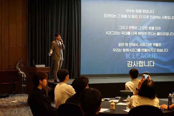 사진=한국프로축구연맹 제공 한국프로축구연맹이 이달 15일부터 16일까지 이틀간 스탠포드호텔코리아에서 ‘K리그 아카데미’ 킥오프 과정을 실시했다. 킥오프 과정은 K리그에 첫발을 내딛는 구단 및 연맹 신입사원의 인적 네트워크 형성과 실무 역량 강화를 위해 지난 2022년 개설된 교육 프로그램이다. 올해는 연맹과 구단 관계자 등 50여 명이 참석했다. 교육 첫날