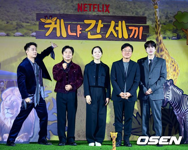 25일 오전 서울 용산구 용산 CGV에서 넷플릭스(Netflix) 예능 '케냐 간 세끼' 제작발표회가 열렸다. 오는 25일(화) 첫 공개되는 '케냐 간 세끼'는 믿고 보는 웃음 메이커 3인방 이수근, 은지원, 규현의 우당탕탕 아프리카 여행기다.케냐의 광활한 대자연과 하나 된 세끼 형제들의 좌충우돌 사파리 접수 여행이 싱싱한 날것의 웃음을 선사한다. 예능계