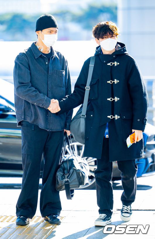 그룹 몬스타엑스(MONSTA X) 5일 해외 일정차 인천국제공항을 통해 대만 가오슝으로 출국했다. 몬스타엑스는 오는 6일 대만 가오슝에서 개최되는 ‘10주년 아시아 아티스트 어워즈 2025(10th Anniversary Asia Artist Awards 2025)(10주년 AAA 2025)’에 참석한다. 몬스타엑스 셔누와 기현이 출국길에 포즈를 취하고 있다