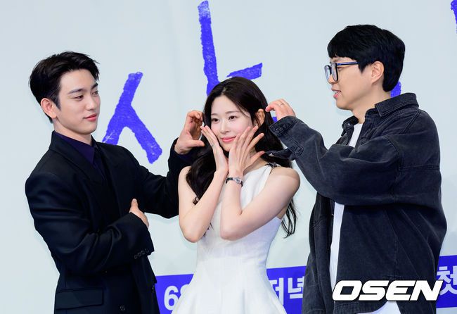 5일 오후 서울 구로구 더 링크호텔 서울에서 JTBC 새 금요시리즈 ‘샤이닝’ 제작발표회가 열렸다. '샤이닝'은 둘만의 세계를 공유하던 청춘들이 서로의 믿음이자 인생의 방향을 비춰주는 빛 그 자체가 되어가는 과정을 담은 드라마다. 배우 박진영, 김민주, 김윤진 감독이 포토타임을 하고 있다. 2026.03.05 /jpnews@osen.co.kr