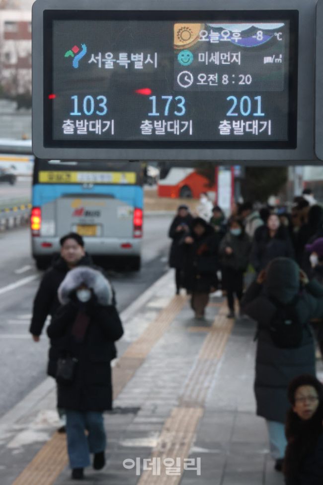 서울 시내버스 노동조합이 무기한 전면파업에 돌입에 들어간지 첫 날인 13일 서울역 버스환승센터 전광판에 각 노선버스의 위치가 '출발대기'로 표시되고 있다.
