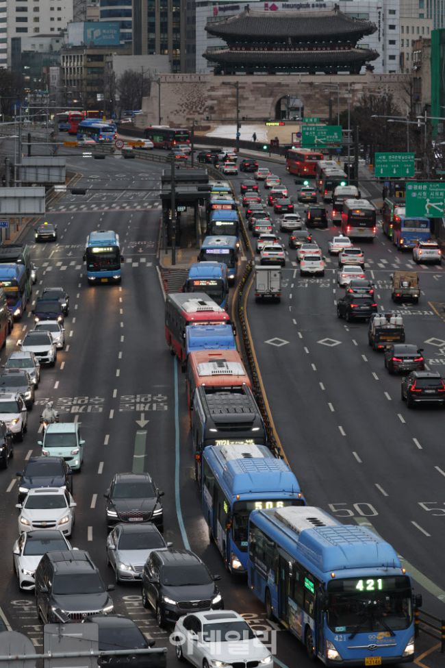 노사 임금협상 결렬로 파업에 들어갔던 서울 시내버스가 협상 타결되면서 운행을 재개한 15일 오전 서울역에서 시내버스가 이동하고 있다.