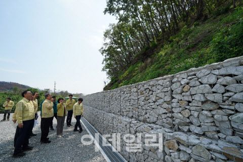 임상섭 산림청장이 19일 경북 의성군 단촌면 산불피해지 응급복구 현장을 점검하고 있다. (사진=산림청 제공) 임상섭 산림청장은 19일 경북 의성군 단촌면 산불피해지 응급복구 현장을 찾아 산사태 등으로 인한 2차 피해 대비 상황에 대한 현장점검을 실시했다. 이날 임 청장은 “장마에 대비해 2차 피해 예방을 위한 응급복구를 조속히 완료하고, 호우시 선제적 주민