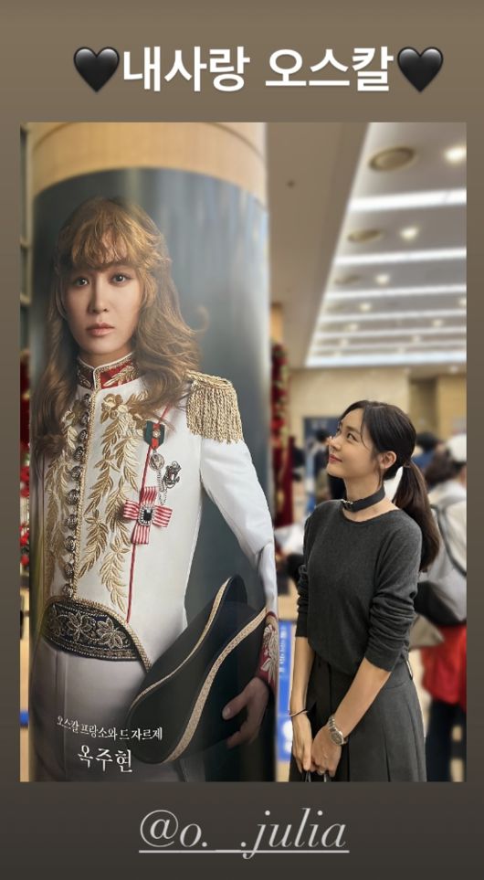 성유리 SNS 코인 사기 혐의로 남편이 불구속 기소된 성유리가 옥주현의 뮤지컬 공연을 관람하러 간 근황을 공개했다. 10월 10일, 성유리가 개인 소셜 미디어 계정 스토리에 여러 장의 사진을 업로드했다. 공개된 사진 속에서, 성유리는 오스칼 역을 맡은 옥주현이 크게 인쇄된 홍보물 옆에서 우아한 자태를 뽐냈다. 사진에 ‘내사랑 오스칼’이라는 문구와 옥주현의