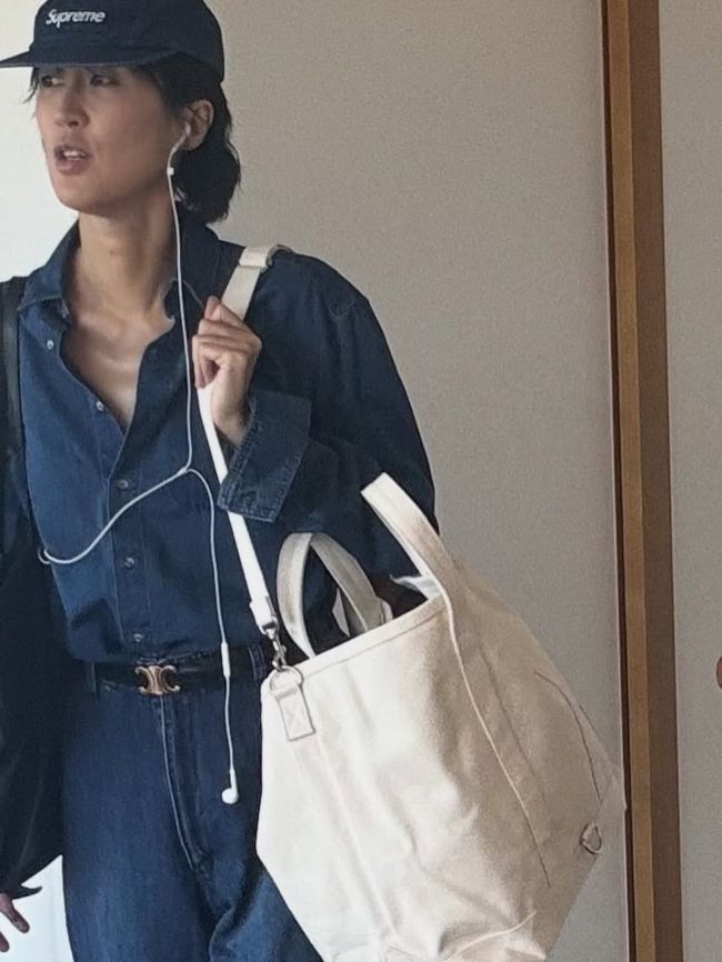 사진 = 홍진경 인스타그램 모델 겸 방송인 홍진경이 데님 온 데님 스타일에 큼지막한 캔버스 백을 매치해 센스 있는 일상을 공유했다. 홍진경은 자신의 인스타그램에 "파리 패션계에서 오랜 시간 활동했던 친한 동생이 가방을 론칭했어요. 큼지막한 천 가방이 마음에 쏙 들어요"라고 전했다. 사진 = 홍진경 인스타그램 홍진경은 네이비 컬러의 슈프림 캡을 눌러쓰고 화이