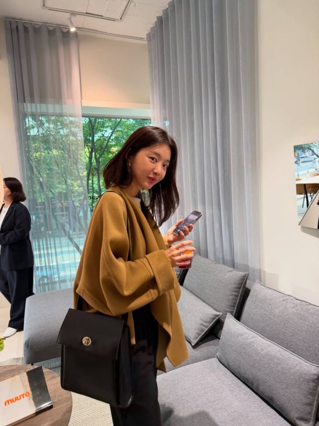 사진 = 장희진 인스타그램 배우 장희진의 럭셔리한 일상이 공개됐다. 최근 장희진은 자신의 인스타그램에 "오랜만에 외출"이라며 "가구 전시회 잼있네"라며 사진을 올렸다. 사진 속 장희진은 따뜻한 톤의 실내 전시 공간에서 머스타드색 아우터와 블랙 팬츠를 매치해 세련된 가을룩을 완성했다. 여기에 블랙 가죽 숄더백을 매치해 고급스러운 무드를 더했고 내추럴한 단발
